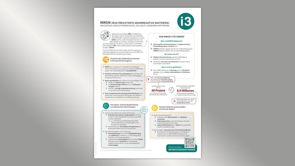 Mehr Wissen – mehr Sicherheit. Laden Sie unser Infoblatt zu MRGN und Multiresistenzen herunter und unterstützen Sie aktiv die Prävention von Resistenzen und Infektionen.